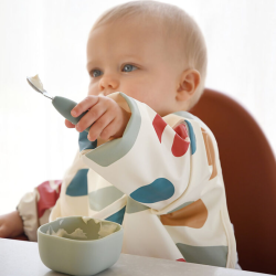 Mango corto y redondeado con poco volumen: permite al bebé agarrar de 3 formas diferentes (agarre con la palma, con la pinza o con el puño).