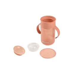 Taza de aprendizaje 360°, con asas y tapa, perfecta para enseñar a los niños a beber solos sin derramar.