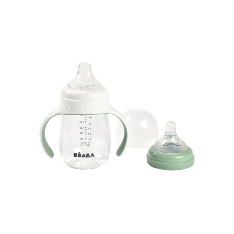 Un biberón de aprendizaje 2 en 1 ideal para favorecer la autonomía de los pequeños. 210 ml