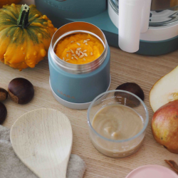 - Doble espesor isotérmico: conserva los alimentos fríos durante 7h (compotas) y las comidas calientes durante 6h (puré u otros).