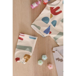 El babero de mango evolutivo 2 en 1 con un bolsillo para recoger los alimentos.