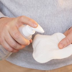 Simplemente aplíquelo sobre la piel con un paño suave, un paño para pañales o una almohadilla de algodón y séquelo, ¡no es necesario enjuagar con agua!.