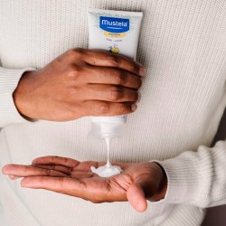 Paso 1: Aplique Mustela Nourishing Lotion con Cold Cream todos los días sobre la piel limpia y seca, asegurándose de volver a aplicar en caso de enrojecimiento o agrietamiento.